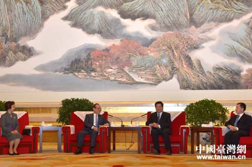 4月5日上午,陜西省委書記趙正永在黃陵會見了臺灣新黨主席郁慕明一行。(圖片來源:陜西省臺辦)