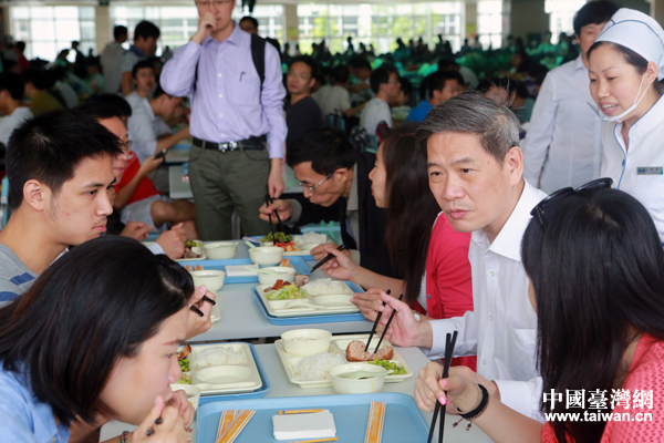 張志軍與臺灣學(xué)生在食堂餐敘(中國臺灣網(wǎng) 于斯文 攝)