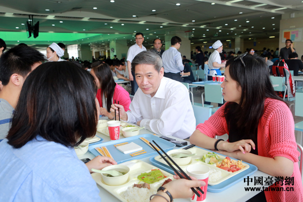 張志軍與臺灣學(xué)生一同排隊打飯(中國臺灣網(wǎng) 于斯文 攝)