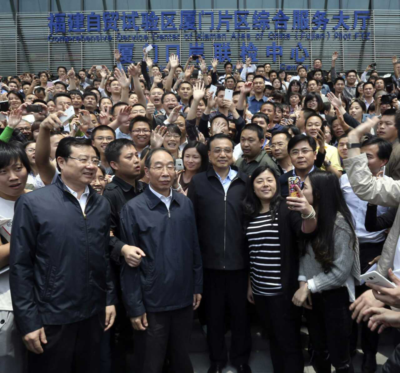 【福建自貿區廈門片區:總理來了!】4月22日,李克強來到掛牌剛剛一天的福建自貿區廈門片區,在象嶼綜合服務大廳考察自貿區改革經驗推廣落地、簡政放權等情況。從兩年前力推上海自貿區成立,到自貿區再結“三碩果”,再到總理本次基層調研,李克強的考察足跡已遍及上海、天津、廣東、福建四個自貿區。