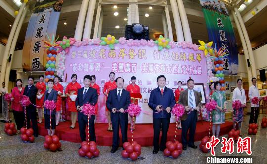 在22日舉行的開展儀式上,中共廣西壯族自治區委員會副書記危朝安、花蓮縣長傅崐萁共同為展覽剪彩。廣西壯族自治區婦女聯合會副主席伍艷娟、中華海峽兩岸婦女經貿文化交流協會花蓮縣分會主委徐子芳,共同主持開展儀式并互贈攝影作品。