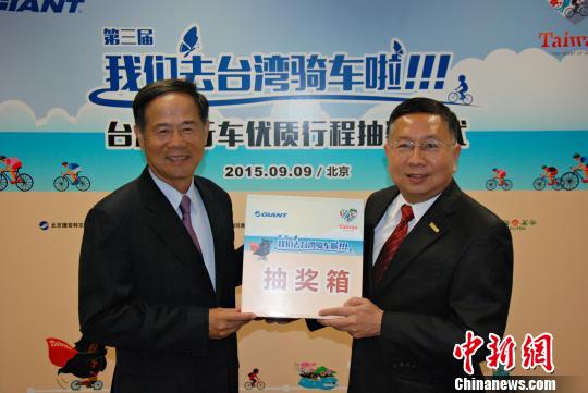 9月9日,臺(tái)灣海峽兩岸觀光旅游協(xié)會(huì)北京辦事處與臺(tái)企北京捷安特公司再度合作舉辦第三屆“我們?nèi)ヅ_(tái)灣騎車?yán)病_(tái)灣自行車優(yōu)質(zhì)行程”抽獎(jiǎng)活動(dòng)在北京揭曉。 楊程晨 攝