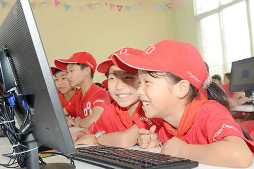 學(xué)生在臺(tái)泥捐資裝修的電腦教室上課。