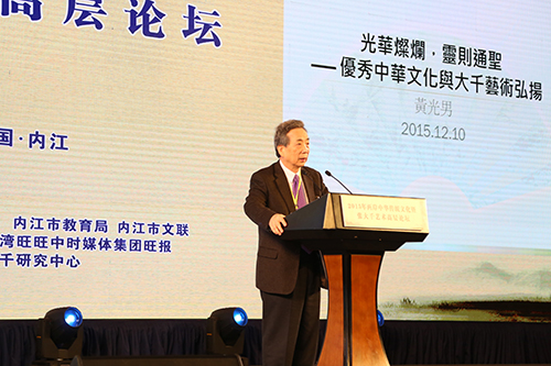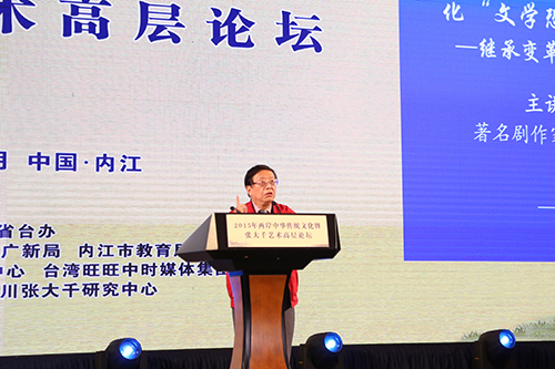 中國臺灣網12月28日內江訊 “大千故里論大千,傳承弘揚共發展。承上啟下話傳統,華夏文明一脈承。”12月25日,2015年兩岸中華傳統文化暨張大千藝術高層論壇在四川內江舉辦,主持人、著名表演藝術家、中國煤礦文工團名譽團長瞿弦和用這樣的開場白開啟了論壇的重頭戲——主題演講。