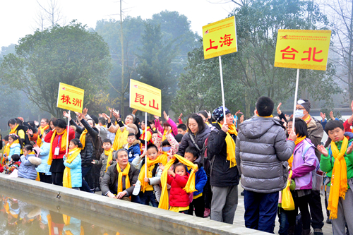 來自兩岸9個城市(上海市、昆山市、臺北市、珠海市、深圳市、長沙市、株洲市、益陽市、成都市)的親子家庭和志愿者約200人開展了為期4天的文化交流,表演了經(jīng)典話劇、快板、情景劇、手語舞《禮運大同》等,誦讀了《論語》、《老子》,河洛漢音誦讀《千字文》等。志愿者還在現(xiàn)場發(fā)放新年愿望卡片,讓孩子們寫下自己的新年愿望。“我要祝爸爸媽媽身體健康”,“我要學(xué)習(xí)進步”,“我要祝世界和平”,大家紛紛將自己美好愿望和新年祝福寫下來,祝福每個家庭幸福和諧。