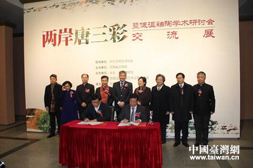 中國臺灣網(wǎng)1月20日鄭州訊 1月19日上午,由中華文物交流協(xié)會指導(dǎo)、河南省文物局主辦、河南博物院與臺北歷史博物館及鴻禧藝術(shù)文教基金會共同承辦的“會古通今——兩岸唐三彩暨低溫釉陶學(xué)術(shù)研討會及兩岸唐三彩交流展”在河南博物院隆重舉行。國臺辦交流局副局長李京文、中華文化交流協(xié)會副會長、國家文物局副局長劉曙光、河南省文物局局長陳愛蘭、省臺辦副主任尚潤澤、河南省博物院院長田凱,臺北歷史博物館館長張譽(yù)騰、臺灣鴻禧藝術(shù)文教基金會廖桂英女士,以及兩岸文博機(jī)構(gòu)和高校的40余位古陶瓷及低溫釉陶領(lǐng)域的專家學(xué)者出席開幕式。劉曙光、陳愛蘭、張譽(yù)騰、田凱等兩岸文物界有關(guān)領(lǐng)導(dǎo)做了熱情洋溢的致辭。