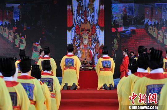 中新網(wǎng)福州3月6日電 (林春茵 劉可耕 王光華)6日,兩千名海內(nèi)外信眾齊聚閩江畔的福州倉山江心公園,共同祭拜臨水夫人陳靖姑。臺灣臺南圣恩佛祖會會長盧友禮率28個臺灣宮廟代表執(zhí)事禮拜,為第九屆閩臺陳靖姑民俗文化旅游節(jié)拉開帷幕。