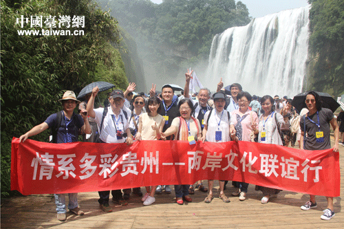 兩岸文化界人士在黃果樹景區合影(中國臺灣網 蕪同 攝)
