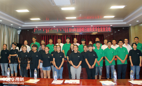 克旗及基金會領導向獲得獎學金同學頒發(fā)證書和獎學金。(中國臺灣網(wǎng) 王思羽 攝)