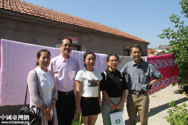 滕鴻年(左一)、吳國禎(右二)與克旗團委書記郭玉玲(左二)到張穎家中走訪。(中國臺灣網(wǎng) 王思羽 攝)