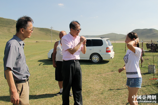 滕鴻年、吳國禎在草原與達日丹話別。(中國臺灣網(wǎng) 王思羽 攝)