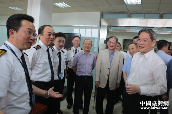 9月12日,張志軍抵達成都后,從停機坪直接前往四川航空公司機場基地,看望正在這里做飛行準(zhǔn)備的臺籍飛行員。(中國臺灣網(wǎng) 于斯文 攝)