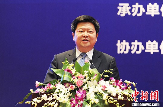 圖為國臺辦副主任龍明彪在交流會上致辭。 中新社記者 安源 攝