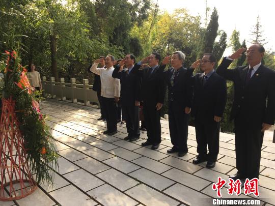 中新網貴陽10月27日電 (記者 楊茜)兩岸黃埔人士共祭抗日名將戴安瀾將軍活動27日在貴州省貴州市花溪公園內的戴安瀾將軍衣冠冢處舉行。