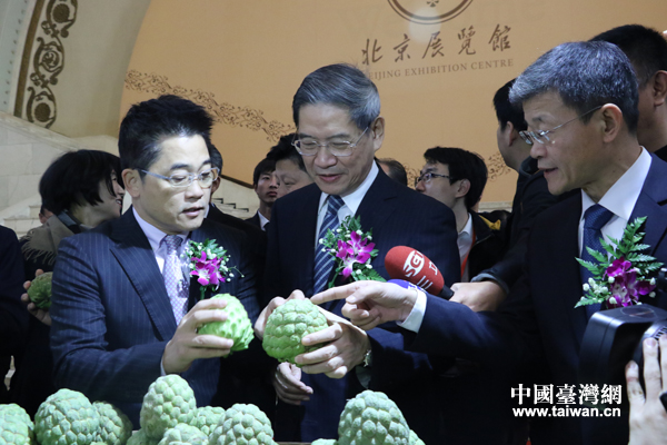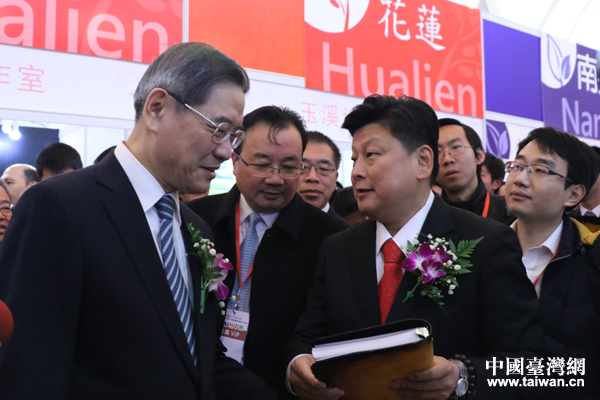 12月24日,臺灣8縣市農特產品展銷暨旅游推介洽談會在北京展覽館舉行。中共中央臺辦、國務院臺辦主任張志軍,北京市人民政府副市長王寧,中國國民黨副主席陳鎮湘、臺灣新北、新竹、苗栗、花蓮、南投、臺東、金門及連江等縣市負責人共同出席開幕式等活動。(中國臺灣網 朱煉 攝)