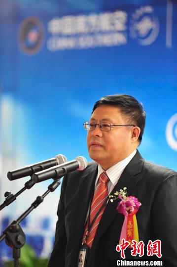 圖為中國南方航空公司海南分公司總經理劉國軍在儀式上致辭。 駱云飛 攝
