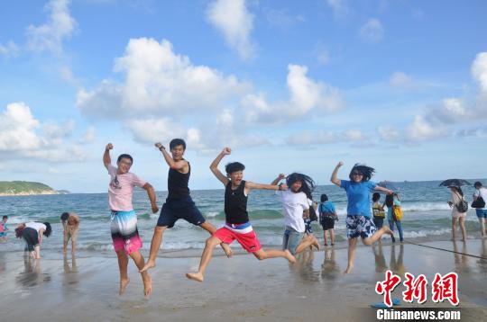 三亞灣的碧海藍天讓大家贊嘆不已,營員們紛紛拿出相機,合影留念。7日起,瓊臺青年學生開展素質拓展活動,參觀海南省博物館、東寨港紅樹林,到五指山體驗峽谷漂流,結下深厚情誼。