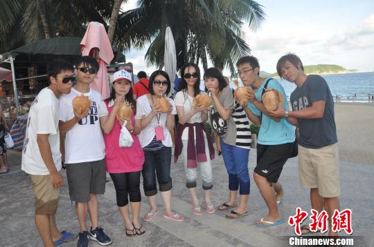 臺北海南同鄉會的青年學生在亞龍灣合影。 周鳳婷 攝