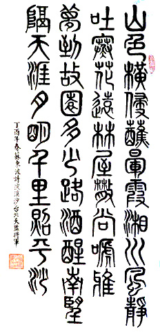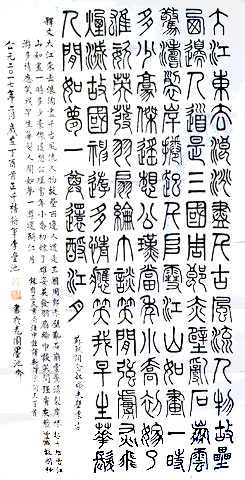 臺灣陸軍總部前署長李豐池少將,以鐵線篆書寫蘇東坡詞《念奴嬌·大江東去》