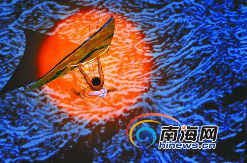 中新社?谌率针 (陳少婷)“閉上眼睛,和我一起輕輕地呼吸,這清新的空氣……”今夜的?谖骱0,不再靜默無(wú)聲,備受矚目和期待的《印象?海南島》大型實(shí)景演出揭開(kāi)神秘面紗,巨大的海膽劇場(chǎng)中,美侖美奐的演出引領(lǐng)著現(xiàn)場(chǎng)一千五百多名觀眾感受強(qiáng)烈的濤聲、海風(fēng)。