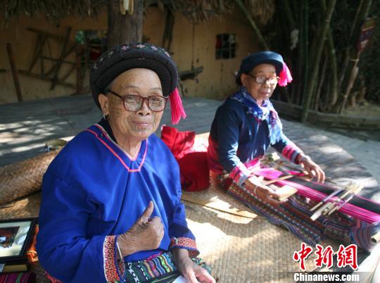 檳榔谷景區里的紋身阿婆熱情地向游客打招呼。薛文埔 攝 陳少婷 攝