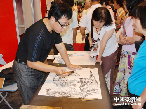 河北省知名畫家王立明現(xiàn)場作畫。(圖片來源:河北省臺辦)