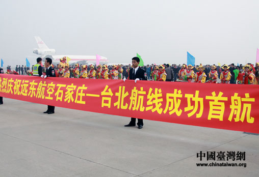 中國臺(tái)灣網(wǎng)10月31日石家莊消息 31日下午13時(shí)10分,臺(tái)灣遠(yuǎn)東航空股份有限公司一架客機(jī)徐徐降落在石家莊正定國際機(jī)場(chǎng),至此,冀臺(tái)“一日生活圈”成為現(xiàn)實(shí),翻開了河北與臺(tái)灣深化交流合作的一頁新篇。據(jù)了解,遠(yuǎn)東航空公司石家莊至臺(tái)北航線,是遠(yuǎn)東航空重返兩岸天空的第一條航線。