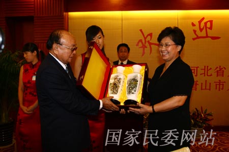 9月14日晚,河北省政府、唐山市政府在唐山市設宴歡迎前來參加第六屆海峽兩岸各民族中秋聯歡活動的臺灣少數民族代表團一行。全國政協常委、中華民族團結進步協會會長江家福,河北省副省長孫士彬,河北省民委主任張寶巖,唐山市副市長張羽,中華海峽兩岸原住民暨少數民族交流協會理事長華加志,中華民族團結進步協會副會長兼秘書長趙保中等出席了歡迎晚宴。晚宴由河北省政府副秘書長李同亮主持。