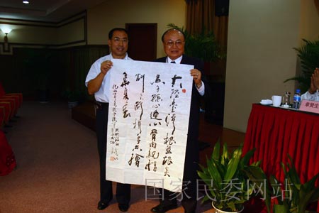 唐山市政府向臺灣少數民族代表團贈送書法作品
