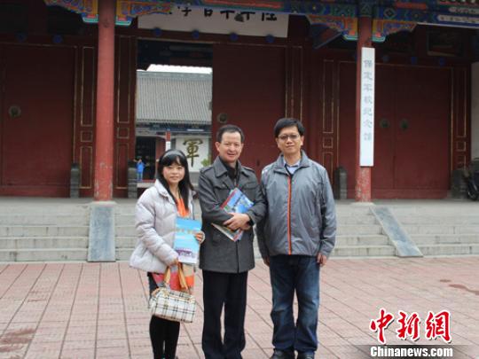 新聞交流團成員與保定軍校紀念館館長馬永祥合影!±罘既A 攝