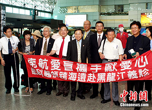 7月13日,臺灣愛盲協(xié)會13位醫(yī)師愛心人士組成的醫(yī)療團(tuán),從臺灣桃園機場乘坐中國南方航空公司臺灣分公司免費提供的航空服務(wù),前往黑龍江省,在7天時間里為哈爾濱、齊齊哈爾等地350名貧困白內(nèi)障人士實施手術(shù)并贈送優(yōu)質(zhì)人工水晶體,使患者重獲光明。中新社發(fā) 宋吉河 攝