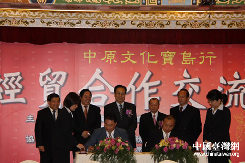 12月16日,“中原文化寶島行”經貿合作交流會在臺北市圓山大飯店舉行,省商務廳與臺灣世貿中心簽署合作協議。圖片來源:河南省臺辦