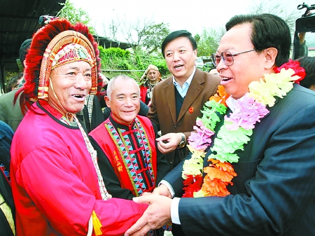徐光春真摯地說:“兩岸不管是什么民族,我們都是中華民族大家庭的成員。中華要振興、要發展,就需要中華民族的每一分子團結起來,共同奮斗。當前,我們正在積極推進兩岸和平發展,大陸的漢族和少數民族要團結,臺灣的漢族和少數民族要團結,兩岸之間的漢族和少數民族同樣要團結。只有這樣,兩岸合作發展的形勢才會越來越好,果實才會越來越多,送給兩岸人民的福祉才會越來越豐盛!”徐光春最后說,“這次我們采購了阿里山鄉30多萬元人民幣的土特產,以表達河南鄉親們對阿里山同胞的深厚情誼。本來我們準備再多采購一些,但村民們說已沒有存貨了,我們只好明天再來采購。同時,我還要代表河南人民向你們發出誠摯的邀請,希望你們明年組團到河南來,到河南的臺灣村去看看你們的鄉親們,探親的費用由河南來承擔!”燦爛的笑容,經久不息的掌聲,身著節日盛裝的鄒族老媽媽們、姑娘們眼里充盈著激動的淚光。