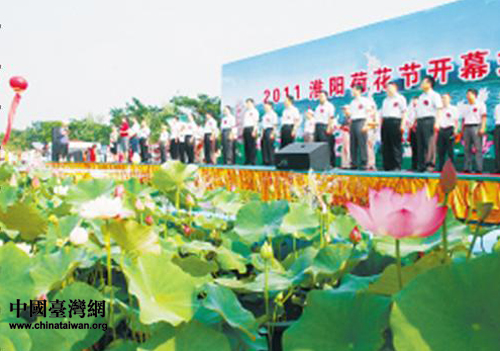 中國臺灣網7月29日周口消息 7月26日,河南周口市淮陽縣萬畝龍湖北岸賓朋云集,荷香十里,2011年淮陽荷花節隆重開幕。眾多知名臺商應邀參加開幕式。