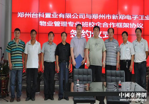 中國臺灣網7月2日鄭州消息 日前,鄭州臺灣科技園與新鄭電子工業學校在該園區招商中心舉行簽約儀式,建立校企聯合機制。此舉旨在通過訂單式培養,為園區發展打造一流的物業管理服務團隊,為企業提供從進駐到投產運營、再到日常管理和生活的全程、全方位無縫式服務,使入駐企業能夠最大化地享受省時、省心、省力、省成本的貼心服務。