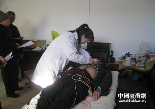 醫(yī)護人員為老人們聽心臟、做心電圖。(圖片來源:鄭州市臺辦)