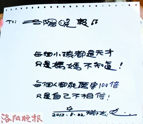每個人都可以厲害100倍,只是自己不相信,你要相信。(洛陽晚報記者 陳兵 見習記者 肖姣姣/文 記者 杜武/圖)