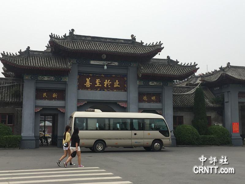 河南大學的牌坊,非常有歷史風格。正面書“河南大學”,背面書“止于至善”。(中評社 徐夢溪攝)