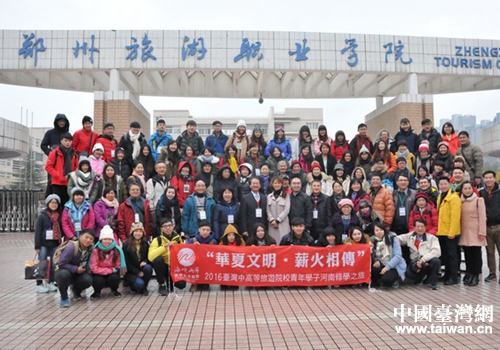 中國臺灣網11月23日鄭州訊 11月21日上午,由海峽兩岸旅游交流協會、河南省旅游協會主辦的主題為“華夏文明?薪火相傳”臺灣青年學生河南修學交流活動在鄭州旅游職業學院舉行, 來自臺灣7所高校的91名師生參加了交流活動。