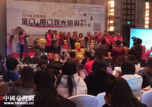 推介會(huì)現(xiàn)場(chǎng),由金門(mén)民俗表演——電音三太子為整場(chǎng)推介會(huì)開(kāi)啟序幕。來(lái)自金門(mén)和廈門(mén)旅游局的負(fù)責(zé)人向參會(huì)的旅行商全面推介金門(mén)、廈門(mén)的旅游資源、產(chǎn)品、線路、發(fā)展政策等。同時(shí),用播放宣傳片、發(fā)放宣傳資料、業(yè)務(wù)洽談等形式,生動(dòng)形象的展示各個(gè)景點(diǎn)的獨(dú)到之處。