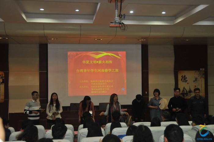 鄭州旅游職業(yè)學(xué)院副院長徐永清對臺灣修學(xué)團(tuán)的到來表示歡迎。他介紹了河南的基本情況及鄭州旅游職業(yè)學(xué)院的發(fā)展現(xiàn)狀。他指出,河南是中華文明和中華民族的重要發(fā)源地,豫臺兩地同根同源,應(yīng)不斷加強(qiáng)往來,增進(jìn)情誼,共促兩岸和平發(fā)展。