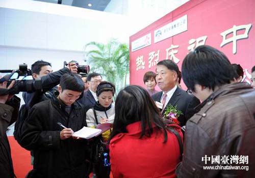 華航總經(jīng)理孫洪祥接受兩岸媒體采訪。(圖片來源:湖北省臺(tái)辦)
