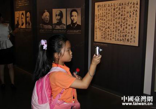 辛亥革命博物館,年僅9歲、就讀于彌陀國小三年級的李聿茨認真地用相機記錄歷史。(王啟宏攝)