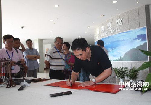 湖北省臺(tái)辦宣傳處處長(zhǎng)伍洋在三峽工程展覽館留下筆跡。(中國(guó)臺(tái)灣網(wǎng) 段雯婷 攝)