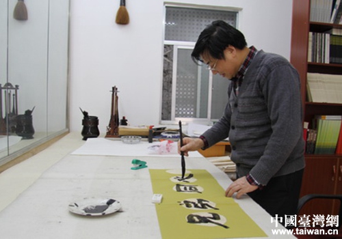 中國臺灣網(wǎng)11月22日荊門訊 11月17日,中國書法家協(xié)會會員、荊門市著名書法家彭金淋得知桃園市龜山區(qū)大同里參訪團一行來到荊門,與掇刀區(qū)團林鋪鎮(zhèn)大同村開展同名兄弟村里交流活動,當即欣然揮毫潑墨,為同名兄弟村里題寫了“兄弟同心手足情深”的條幅,令參訪團臺胞感動不已。