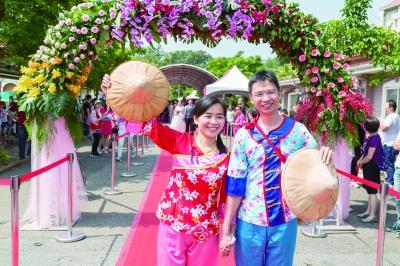 本報訊(特派記者劉曉雙 張晨蓮 關馨)潔白桐花開滿枝頭,桐花紛飛如浪漫“五月雪”,武漢、苗栗兩地66對新人在桐花樹下共許婚約。昨日,結束8天跨越海峽浪漫桐花婚典的26名武漢新人返回武漢,他們稱依然沉浸在夢幻桐花婚禮的甜蜜回憶中,武漢新娘羅麗霞說:“以這種方式與寶島臺灣和臺灣新人結緣,太贊了!”