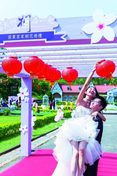 桐花婚禮,被臺灣同胞稱為“最浪漫的夢幻婚禮”。每年3月至5月,臺灣島從中部到北部,漫山遍野的油桐樹上,都會盛開朵朵白色油桐花,成為臺灣春季山郊最美的風景,桐花樹下的集體婚禮也成為苗栗新人的美好傳統。