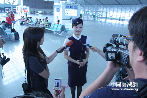 武廣高鐵長沙南站的工作人員,以其美麗的笑容和漂亮的制服吸引了兩岸媒體的諸多鏡頭。(中國臺灣網 楊麗 攝)