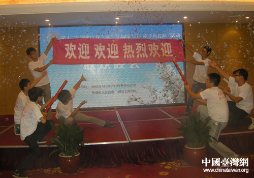 中國臺灣網9月4日常德消息 日前,湖南省人民政府臺灣事務辦公室、常德市人民政府、湖南文理學院舉行盛大晚宴,歡迎參加2012年第十二屆湖湘文化之旅“青春兩岸行·牽手桃花源” 的臺灣青年學生。
