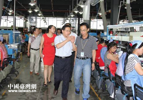 中國臺灣網7月23日祁陽消息 日前,湖南省臺辦副主任劉珍瑜,省臺辦副巡視員羅愛民一行在市臺辦主任吳汝鳳的陪同下到祁陽縣調研臺資企業凱盛鞋業。祁陽縣委常委、副縣長、統戰部長左雅婷,統戰部副部長張良佳,縣臺辦副主任趙富生等陪同調研。